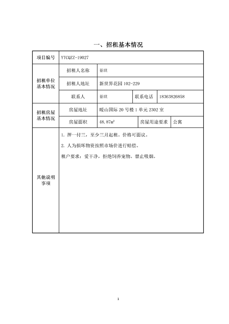 暖山國(guó)際20號(hào)樓1單元2302室招租