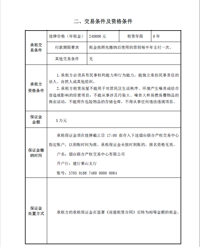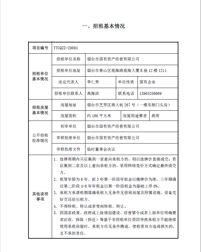 煙臺市南大街267號一樓東側門頭房招租公告