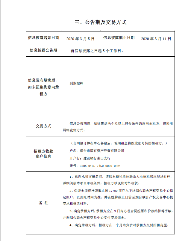 掛牌起止日期:2020年3月5日至2020年3月11日