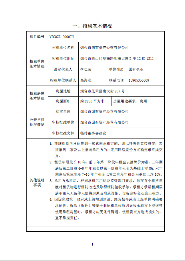 煙臺(tái)市南大街267號(hào)1-7層(除一樓東側(cè)門(mén)頭房)、東側(cè)停車(chē)場(chǎng)招租公告